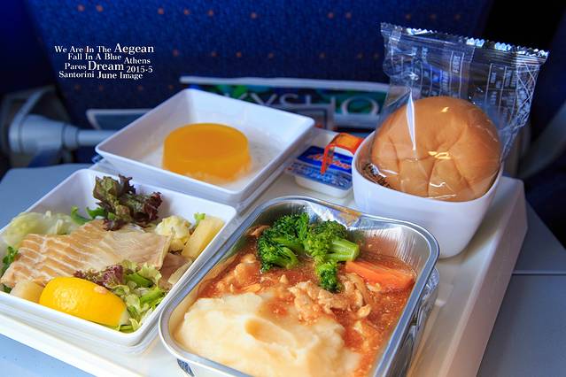 这程飞机还发了菜单,但内容都没变,可怕的熏鱼萨拉,硬、干、甜得要命的面包。对了,这一程有一餐是早餐,烘蛋和pancake两种。只是那时骏爷睡得浑身痛,忘了拍照了。
