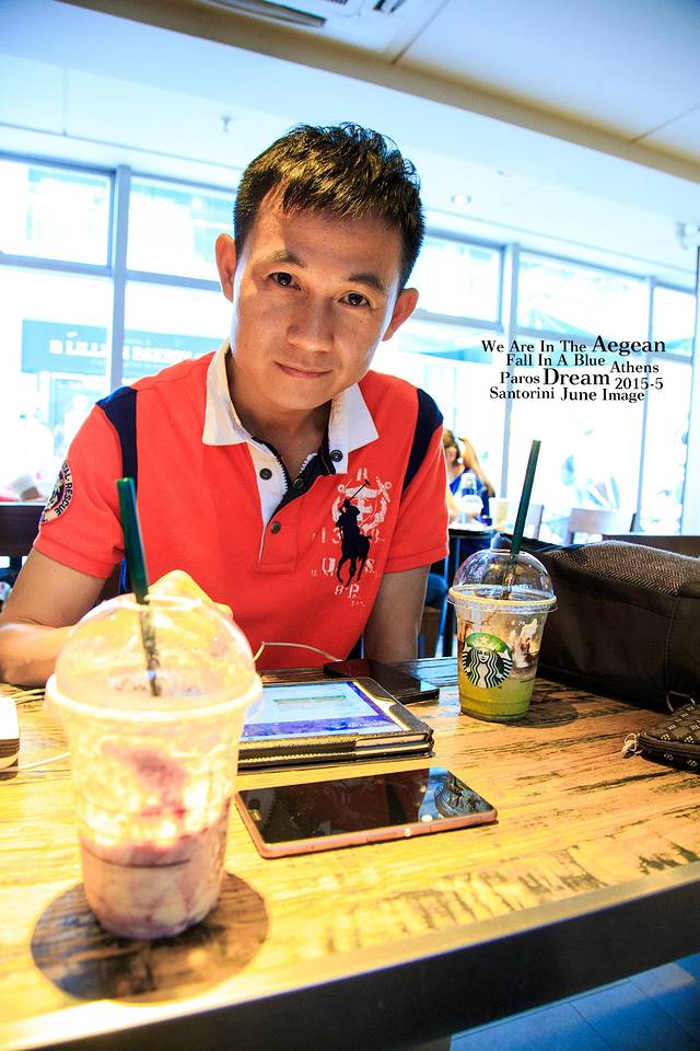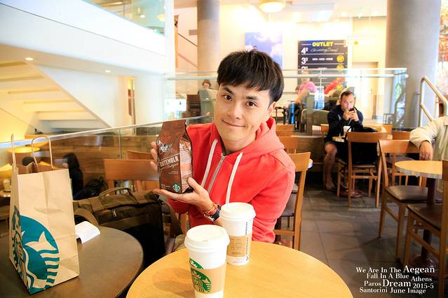 雅典星巴克的价格倒是比国内亲民很多,国内大杯的size的cappuccino3.5欧。问题是服务员叽里呱啦地跟京京讲了一堆什么,京京也没听懂什么意思。最后变成了买一包5.95欧的咖啡豆,送两杯咖啡。先不说两杯咖啡,这包咖啡豆国内都要100多了。这到底是什么情况,骏爷要转运了吗?赶紧合影留念先,哈哈~~
