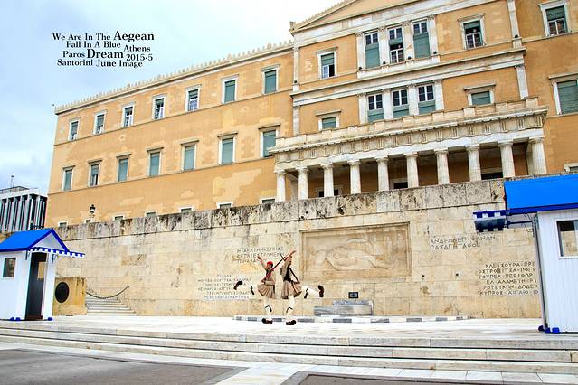 到达宪法广场了,天气不是很好。但正巧10点半的换班仪式。