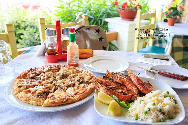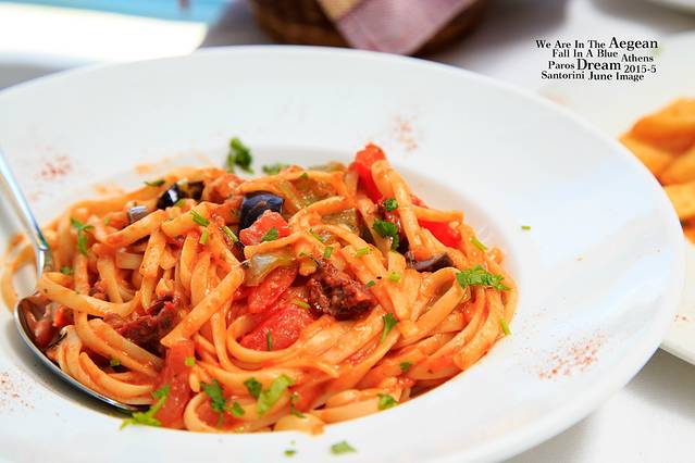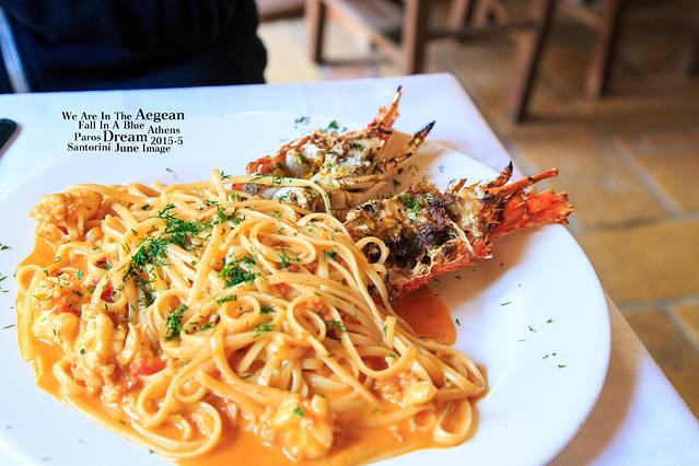 在希腊最后一天了,决定要吃好一点。京京点了一个龙虾意面(23欧)。味道十分不错,性价比还是可以的。