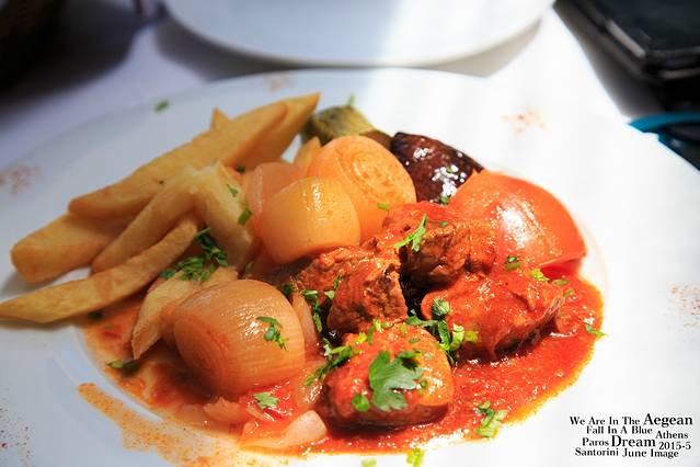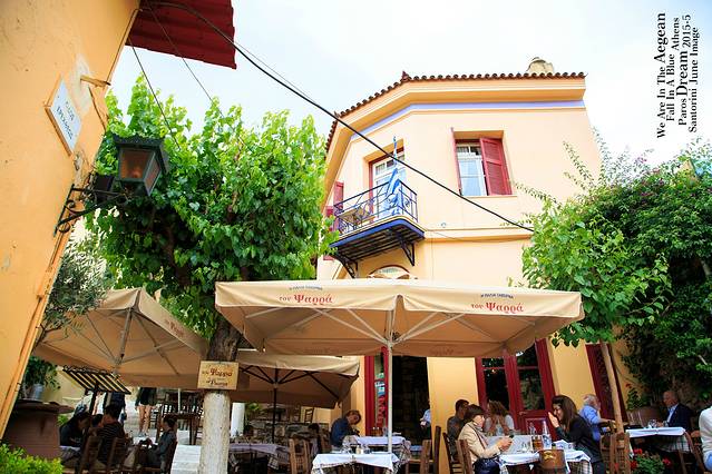卫城下去不远就是普拉卡了。那边林立着各种纪念品商店,饭店。听说这家叫Psaras的餐厅很有名,于是两个人就导航着过去了。