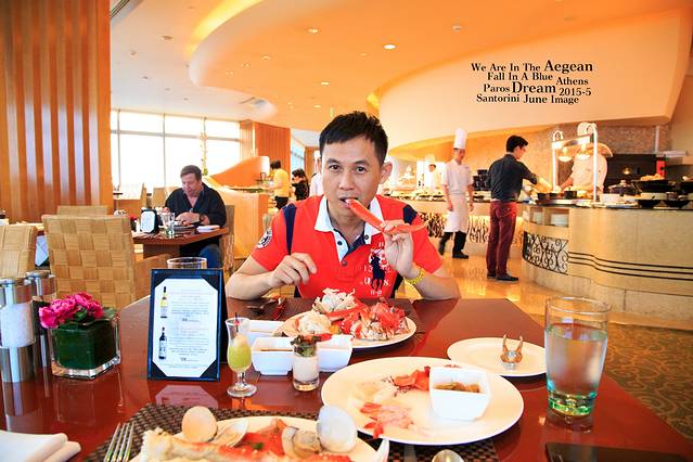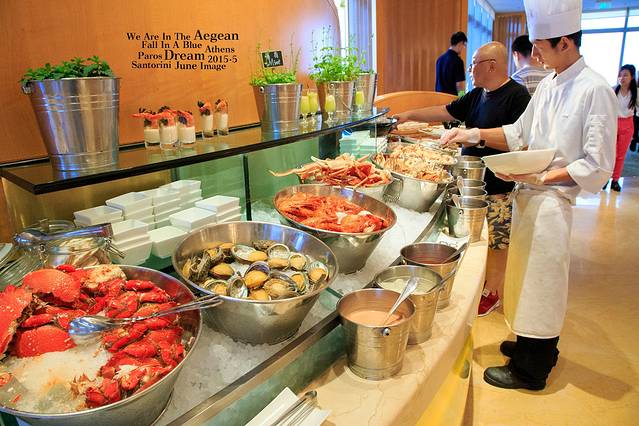 JW万豪酒店的自助餐在酒店的38楼,六点正式开始。买一送一,加上15%的服务费,两个人是415软妹币。