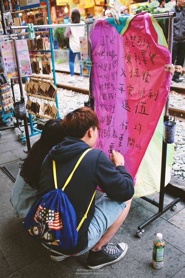 我们去的这天正好是台湾春节最后一天,很多人来平溪放天灯许愿,人满为患,那个小火车要把吃奶的劲使出来往上挤,要是没挤上就得等下一班,一小时。。。伤不起,一天下来累SHI了
