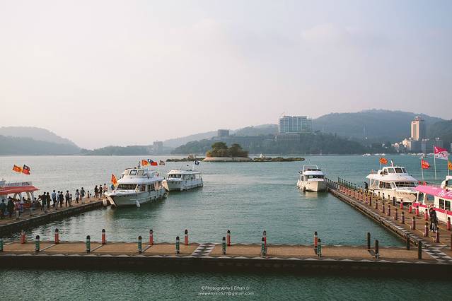 下火车后直接转车去日月潭。日月潭分享两个干货:第一个是非常非常重要的,日月潭分为三个景区,旅游大巴只能到水社码头,而景区的游船是单向从水社->玄光寺->伊达邵->水社。笔者去之前不知道,定的酒店在伊达邵,导致我必须拖着箱子去排队坐游船,更致命的是游船下午5点多就停船了!导致我当天晚上不得不在鸟不拉屎只有短短两条商业街的伊达邵玩了一个晚上,而旅游集中的景点和商业街,全部在水社!并且大巴到了后就能直接入住!所以你一定要把住宿定在水社!第二个是游船的票,当你一下大巴就会有向导来给你指导和卖票给你,票分为两种,一种是当天单圈(水社->玄光寺->伊达邵->水社),第二种是当天无限次,但实际证明单圈的也能无限次坐。。。