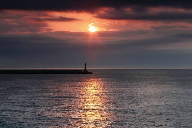 我们在花莲住的名宿有个大大的观景阳台,直面大海。不过老板前晚就告诉了我们看到日出的几率很小,因为这两天都是多云阴天。天还没亮,当我还在梦里挣扎要不要起来试试运气时,仿佛听到基友起来到阳台去试探的声音,过了一会他回来睡下了,我想没戏也跟着昏昏睡去。也不知过了半小时还是一小时,他秉着不服输的精神又一次起来,并叫醒了我一起去阳台等等看,于是我睁着朦胧的睡眼昏昏沉沉的跟了出去。