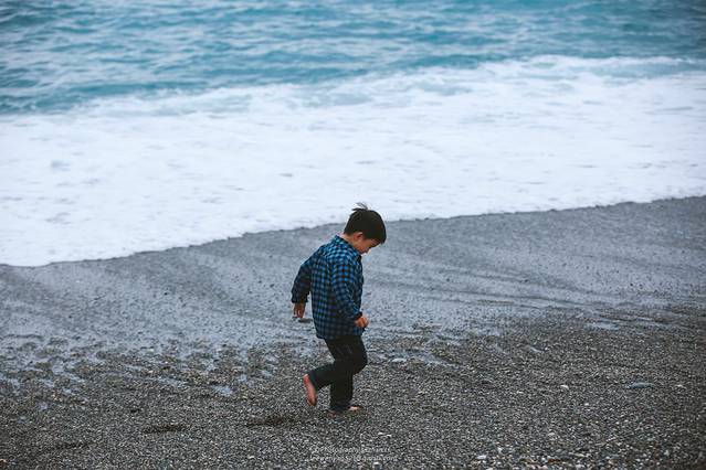 七星潭的浪很大很猛,我拍前几张照片时就被一个突如其来的大浪打的浑身浇湿。这个熊孩子不断的往浪里冲,一旁守护他的爷爷不断的要把他往外面抱,那画面反复播放非常有趣,我则在一旁默默的按下了无数的快门^^