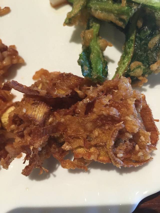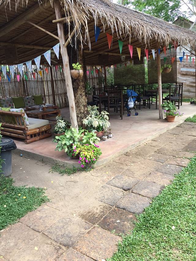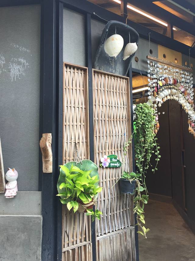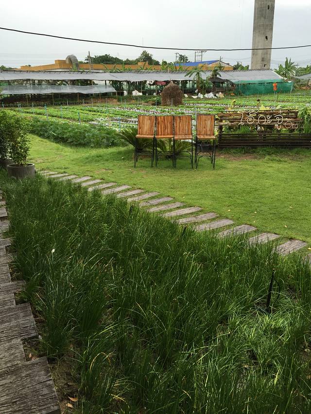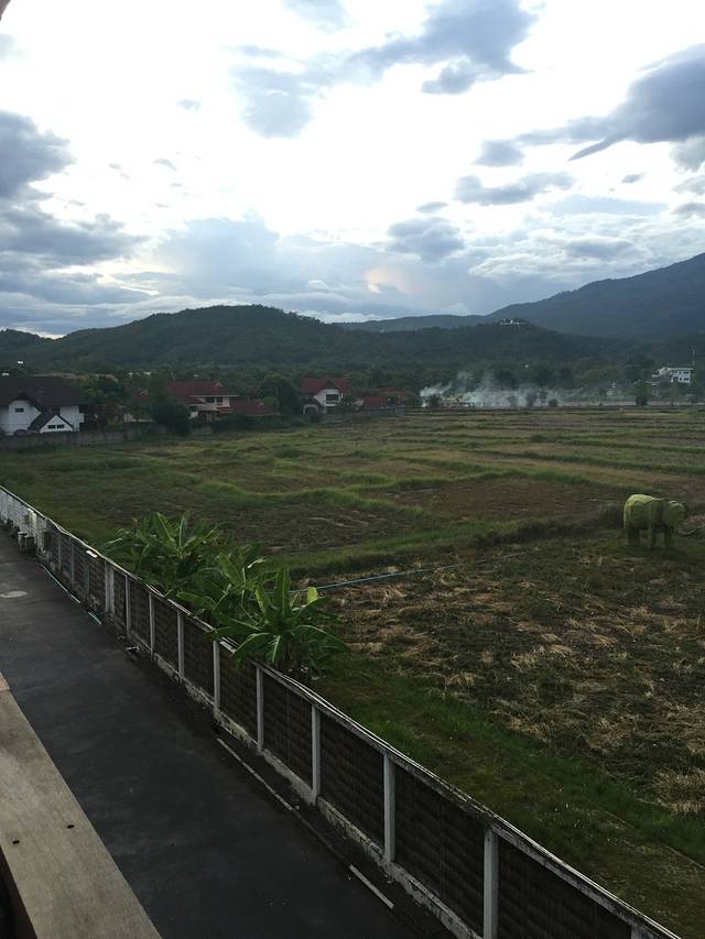 这家餐厅在小区里面,据说小区有家做泰式按摩的是全清迈最贵的!此家餐厅楼下是游泳池和咖啡厅,楼上是餐厅。后面的农田也是餐厅老板的,吃的米就是农田里自家产的!餐厅门口还展示着几袋米,可能是可以买回去的吧!价格不贵,三大三小,吃得饱饱的,折人民币300多!呵呵!