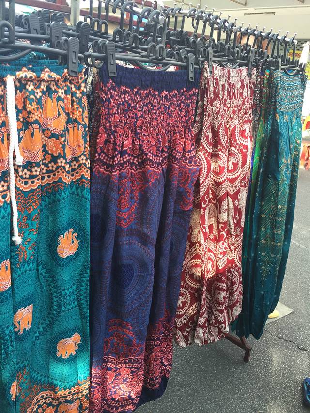 入乡随谷,咱也来条大象裤!基本上是150B一条!我和朋友不同摊位买的,我买的拿回去洗后就发现裤腿开线了!缝了缝,再穿两次,再洗时发现PP处开线了。真怀疑穿的时候PP处就已经开线了,真丢人啊!褐色严重,每次洗每次都褪色!
