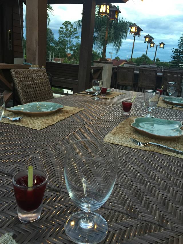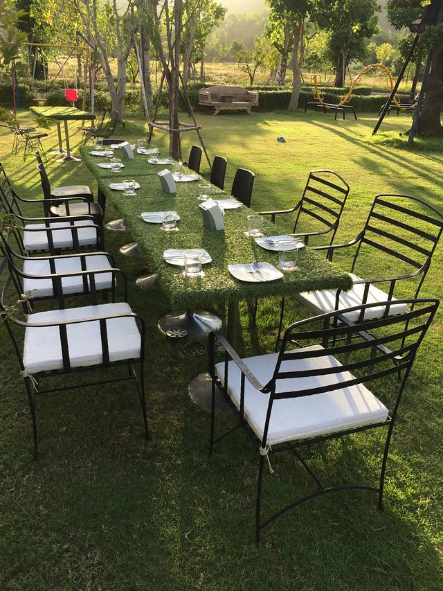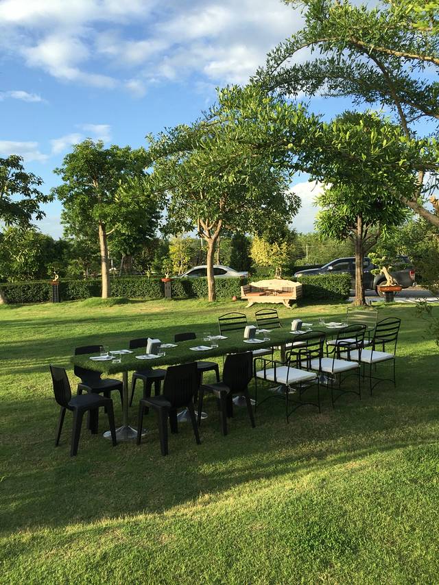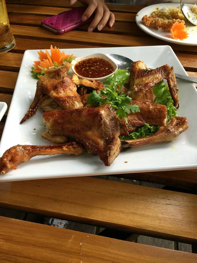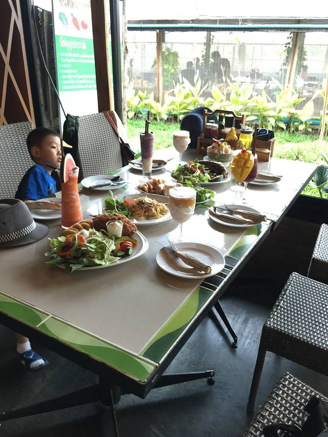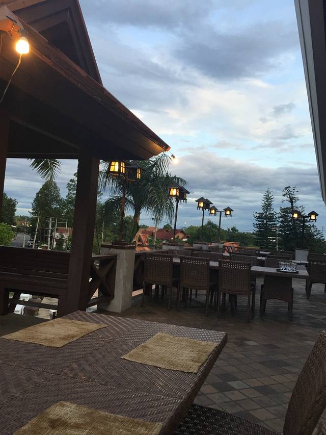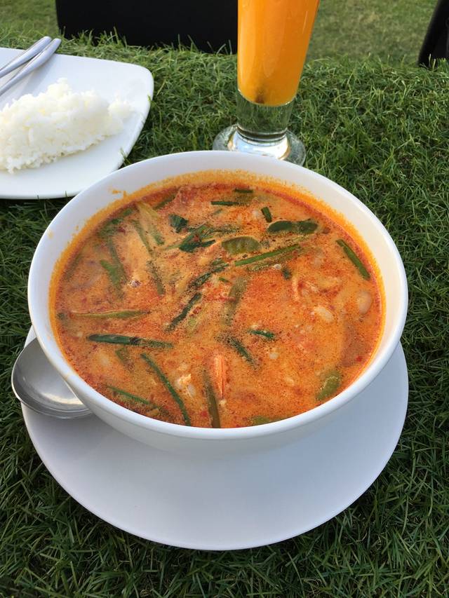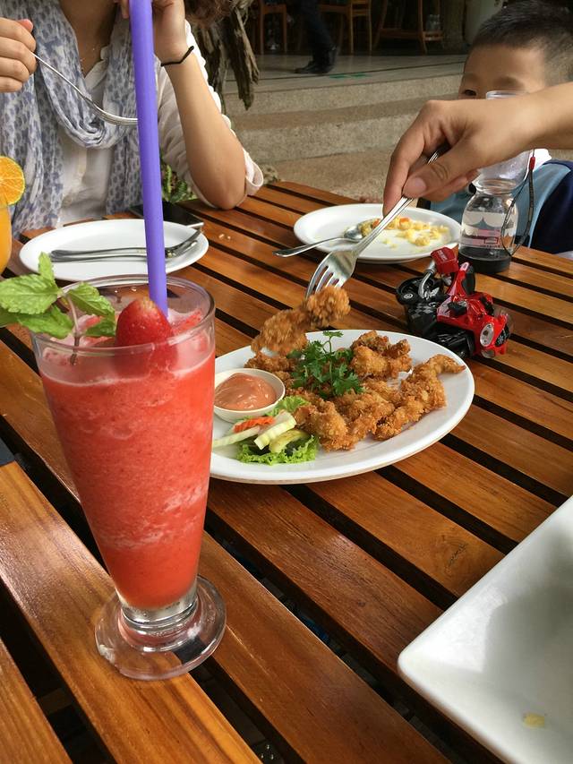 朋友经常去的,在山上!属于改良过的泰国菜。那一片山都是餐厅老板家的!门前大大的草坪,孩子们一会踢球,一会荡秋千,一会爬高,玩得很开心!正因为场地空旷,适合小孩子玩,我们共去了三次!价格也不贵!第一次去就我们一桌;第三次几乎满座,有情侣约会的,有公司开会的,有办生日PARTY的。
