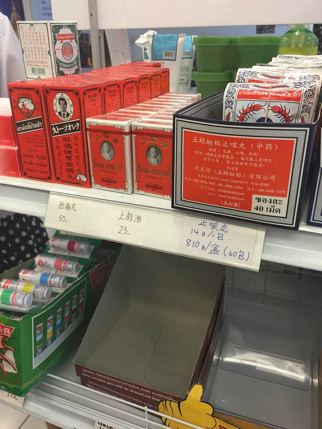 我们每到一个地方,只要看到了,无论是小店还是商场就会把要送礼的买起来!到最后一天,发现青草膏越来越便宜!以大罐的来说,最开始我们买的是350B一条(3小罐),后来是300B 250B ,最便宜买的是200B。