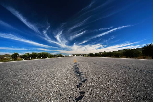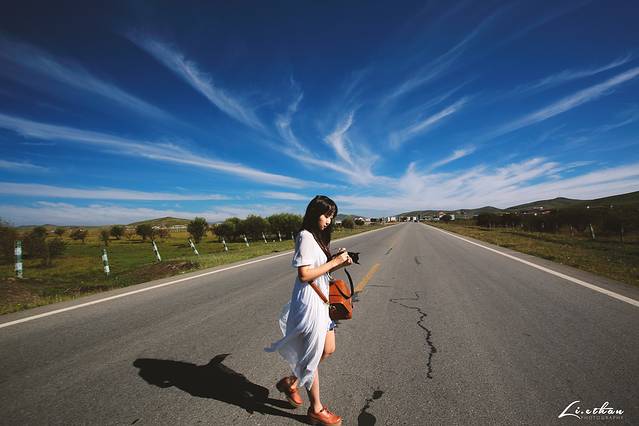 马路尽头的云实在太美,让媳妇儿帮忙看着后方的车,赶紧趴地上咔嚓了两张