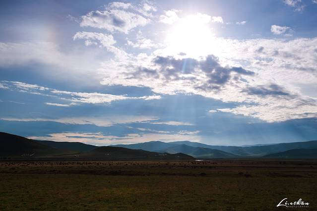 拍了几张后发现日落还不错,立马转移阵地到了红原县外大概10来公里一个无人的地方,觉得视野还不就开始自娱自乐起来,居然把之前镜头坏的事忘得一干二净- -。