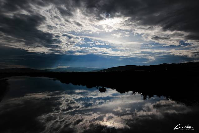 到达第一个观景台,湖天一线,平静的湖面像是一面镜子。可惜开车开的太累的我实在没精力背上脚架,要不能拍出更平静的湖面
