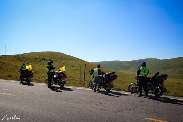 路上有很多骑摩托组队旅游的,一到风景不错的地儿她们就把摩托一字排开下来拍照,很酷!