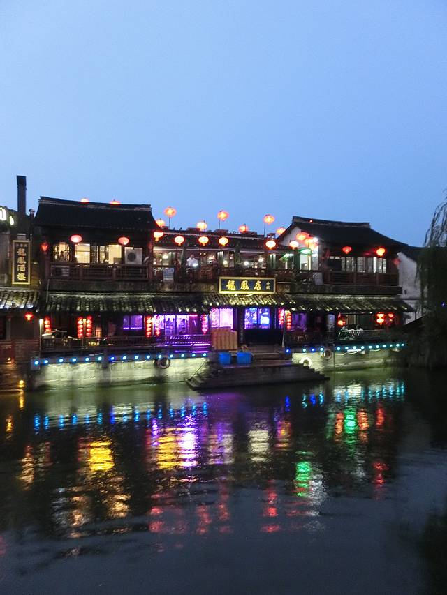 夜晚的西塘霓虹闪烁,红灯高挂,人声鼎沸,歌舞飞扬,又好像是灯红酒绿的大都市。