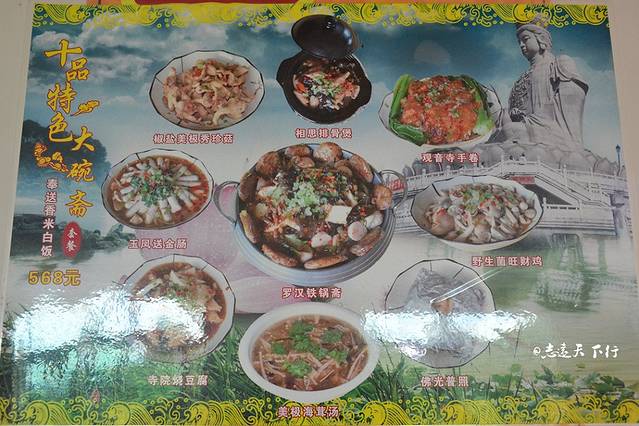 美食:作为传统的客家古镇,樟木头镇的客家美食口味浓厚,为人称道,迥异于粤菜的咸鲜滋味,乃当地一绝;观音山公园内建有农家餐厅(会展中心旁的如意餐厅)和占地近千平米的斋菜馆(观音广场旁),可提供多种精美客家菜和养生斋菜素食,菜价平易近人,菜品美味可口。八珍乾坤袋慈、航如意卷、凤梨咕噜肉、如意百合虾等经典主打斋菜,多次荣获东莞餐饮行业“钻石名菜”称号。