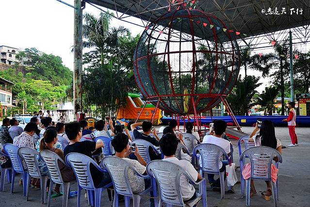 从门楼检票进入景区,沿左侧的佛光路上山,爬过一个高坡,有一座占地面积达五万平米的钢构建筑,这就是国际会展中心,观音山的中央舞台,是平时举办文化演出、节日庆典和会展的大型活动的理想场所。每天在此可欣赏到正宗的少林功夫、吉祥的佛教歌舞、时尚的文艺节目和惊险刺激的飞车杂技等。