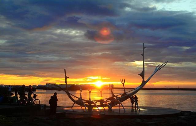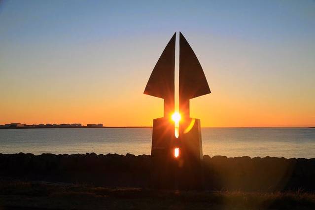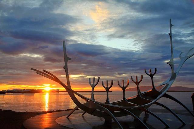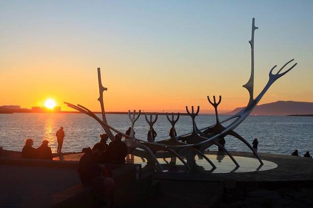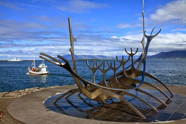 雷克雅未克海边纪念标志,The Sun Voyager 维京船,纪念几百年前维京人先驱来到冰岛