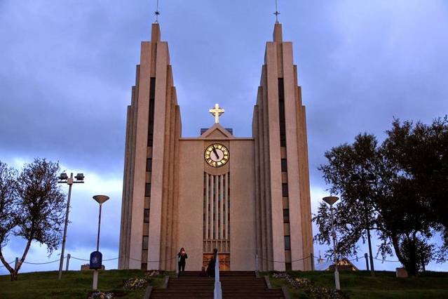 阿克雷里市大教堂在暮色之中