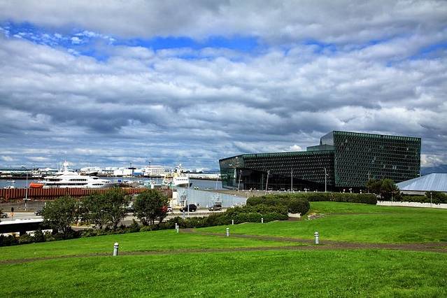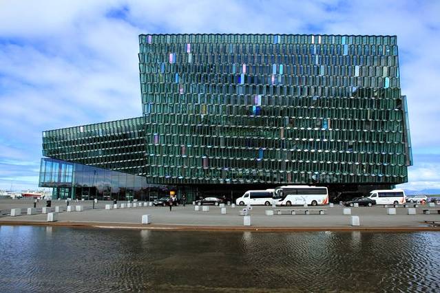 2011年新落成的Harpa音乐厅会展中心位于雷克雅未克海港,引人注目的是五彩玻璃窗,在阳光的照耀下反射着美丽的颜色