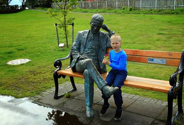 湖边公园雕像,一百年前冰岛著名的诗人和现在的孩子