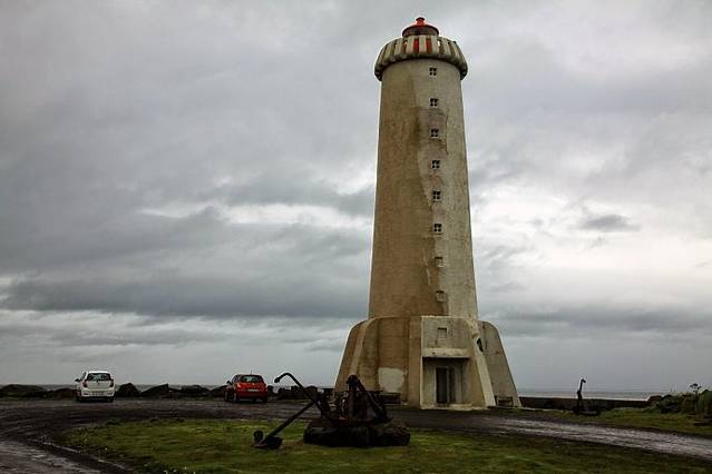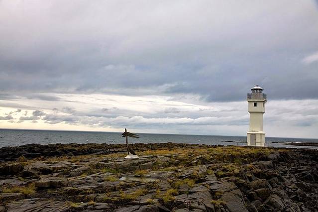 沿54号公路返回到Borgarnes博尔加内斯转向1号公路向南,再开几十分钟就到了西部重镇Akranes阿克拉内斯。这里最重要的景观是海边的灯塔,我慕名而来到灯塔跟前,高大的灯塔矗立在海边岩石上,风吹雨打,锈迹斑斑,彰显历史的沧桑。