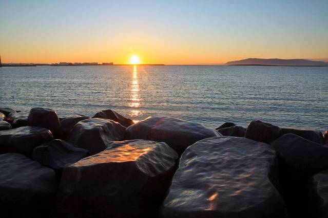 再次来到海边,坐在维京船旁,静静地看太阳慢慢落下