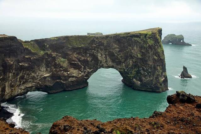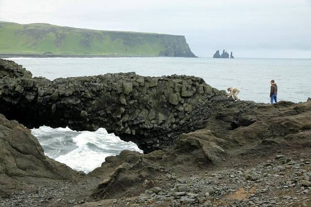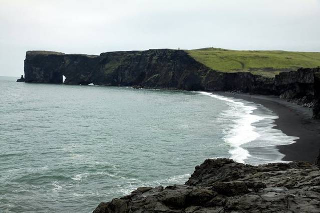 来到Dyrholaey,登高远望,延绵几千米的黑色沙滩就在眼前,还能看到海上还矗立着许多怪石礁岛,景色颇为壮观