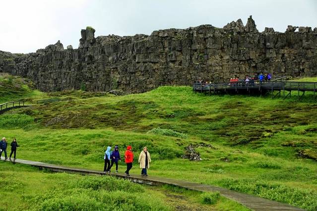 出雷克雅未克市区走#1号公路向北转#36号公路,直奔Golden Circle黄金圈风景区。第一站来到Thingvellir National Park 辛格维利尔国家公园。