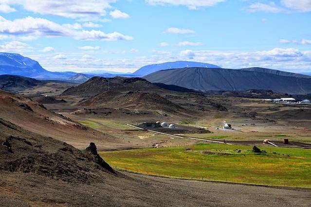 米湖风景区的中心小镇Reykjahlid,湖边风景