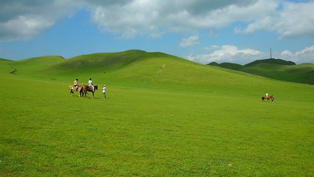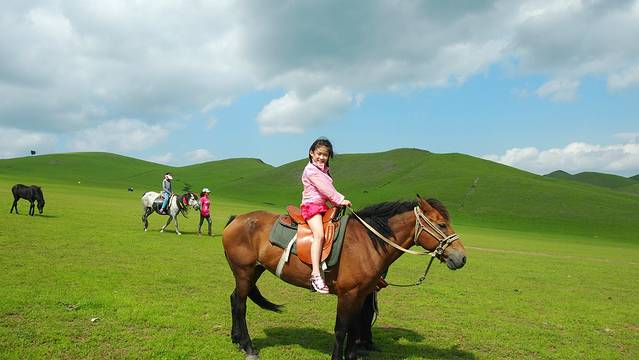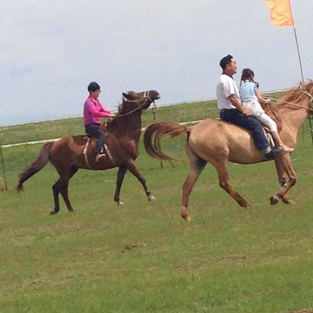 师傅带着我和姑娘一起骑着马兜了一圈,估计是师傅看见我骑的还不错,他就松开了我那匹马的缰绳,我也自己小骑了一下。