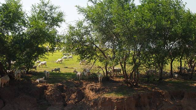 从这个插着红旗的地方右拐上山,就是拍根河湿地美景的最佳位置了。这条路是从我们住的宾馆出来往南走印象中是走道额尔古纳大街再一直往西走,应该是走到S301道路上,出了市区大概几公里的样子,路的右手边就能看到。
