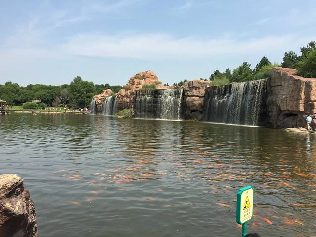 进入景区有游览车,其实园子里没有多大,游览车基本上是绕着大圈走,到了比较大的景点就停下来,游览完了还在下车的地方排队等车继续走。要是天气凉爽走走很舒服,不过我们去的这天太热了,还是坐着车溜达吧。