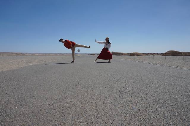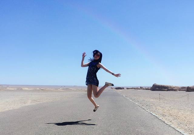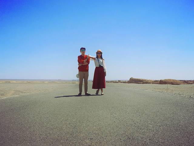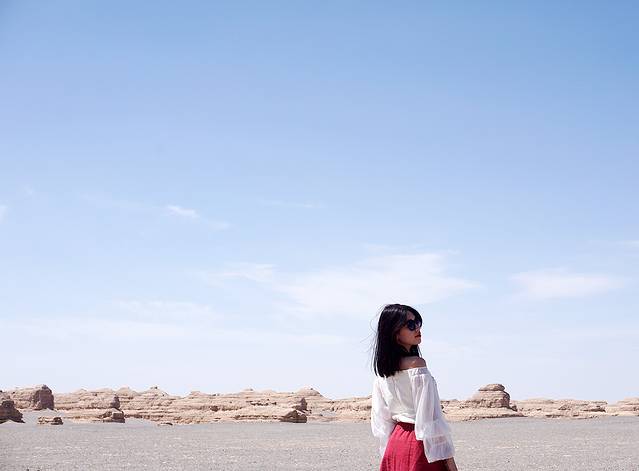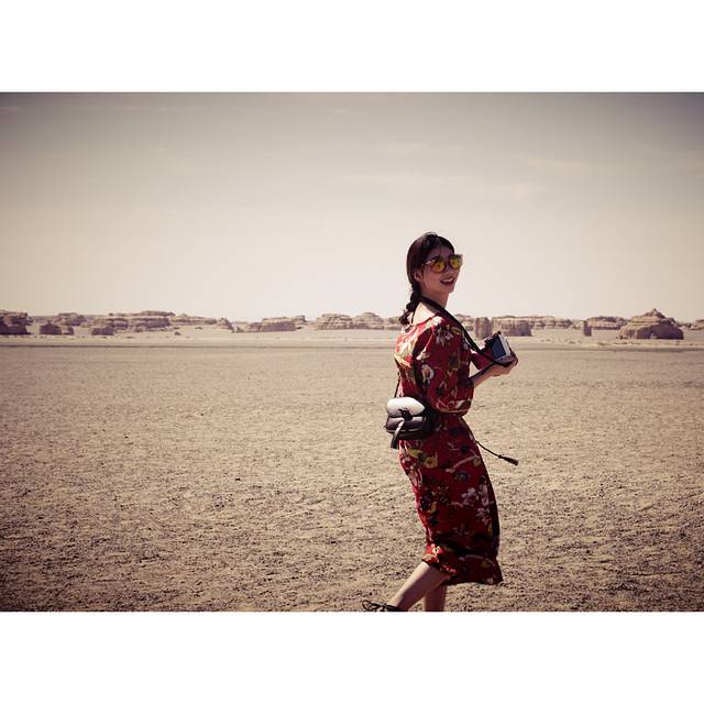 一上车就开始抱怨这冷飕飕的天气,失策的我们差点冻死在沙漠中。一大早又去了一趟羊肉粉条的店里,喝了一大碗的牛肉汤才缓过神来。接下来就是去魔鬼城雅丹地貌了,一直以为是司机带着我们一路开下去,没想到要卖门票然后坐大巴进去,一个景点只有十分钟可以观赏。本想说冒险开去罗布泊,也只是幻想了哈哈。 由于早上被冻成狗,每个人的心情看起来都不是很好,精神也不好,没有拍照的欲望,只是看看。但是不知怎么的又燃起了激情,可能觉得自己萌萌哒吧。