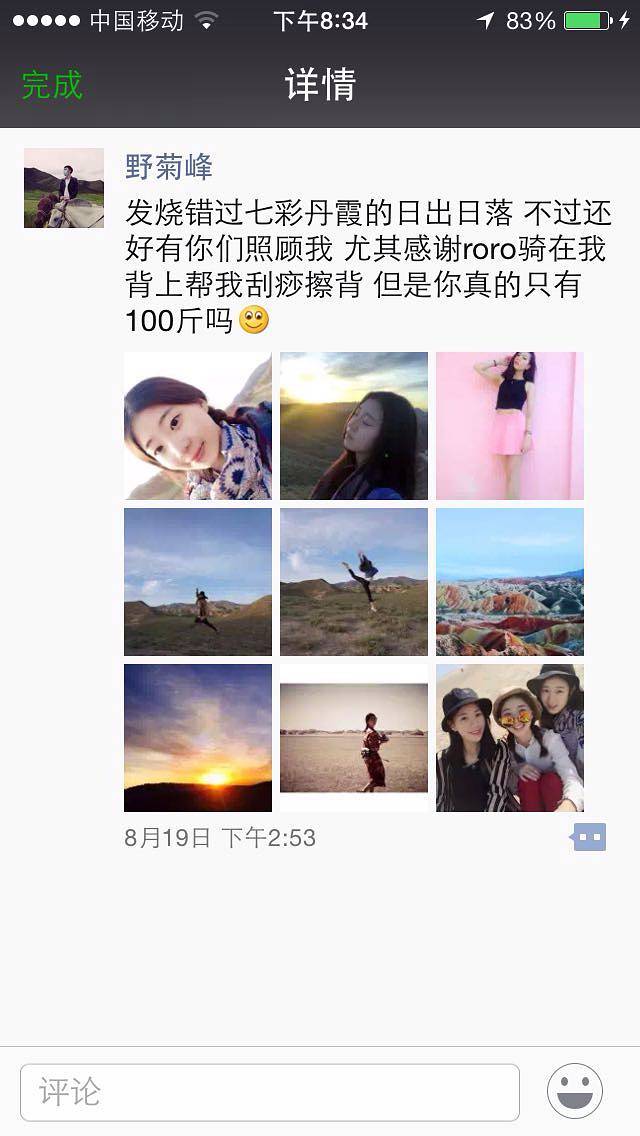 只是好可惜FF因为身体状况错过了丹霞地貌为此他还发了一条朋友圈,我们欣赏一下