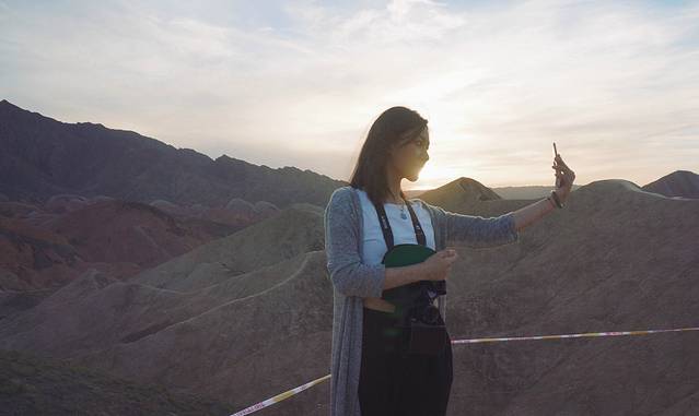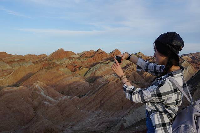 拍完游客照,又拼命赶回诊所去接FF,可怜的FF因为手太胖找不到血管扎了两针都青了。不过幸好打完吊针稍微舒服了一点。接着直接开去丹霞,到达售票处时还剩七分钟,就急急忙忙去买票,进行二次登记,赶上最后一辆车然后勘察一下拍照地貌,准备着第二天的日出。