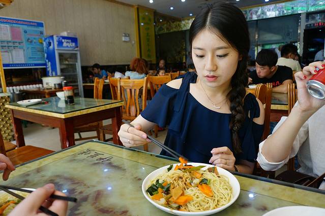 一下火车就感受到敦煌清晨的寒意,还是短袖短裤的我们冻出了一身鸡皮疙瘩,我是来自南方的一条狼,这点冷算什么。一出火车站,就马上见到了我们的包车师傅。方师傅看到我们的表情,哈哈哈,有种照片与实物不符差评的赶脚。ps:师傅别急,徒儿们还没画个魔幻妆。方师傅带着我们去吃了羊肉粉条,羊肉粉量特足,特大碗,特好吃。第一顿早餐由方师傅请客,师傅说请我们吃第一顿早餐是代表了敦煌人的热情。