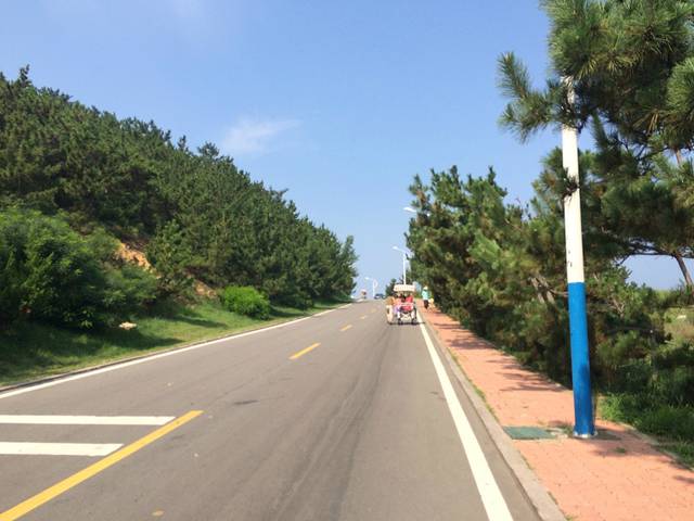 今天晚起了,这两天孩子们都玩的很累,旅行嘛,是放松不是压力,于是大家都睡到自然醒了。吃完早饭带孩子们出门,直奔租自行车的地方,租到一个很便宜的车,一小时25元,之前路上打听别人的租车价格都是40元,好吧,小小嘚瑟下。一行人开始沿环海路骑行,感觉超赞,路上的风景也超级赞。半个小时后看到了小石岛的牌子,按着牌子骑,结果到的是个码头,有种被骗的感觉。于是返程呗,在路边碰上打扫卫生的大叔,小丫头去问,说再往前走,前面有座桥,下面就可以了,于是我们一行又兴冲冲的去了,哈哈,真的找到了。提着桶准备下去大干一场呀,翻石头,翻石头,连螃蟹崽崽都没有一个。好吧,就捡贝壳吧,真的很多,也有很漂亮的,捡了好多,走呀,水真的真的很腥很臭(房东姐姐说不臭那些海鲜吃啥呢)。好吧,我又孤陋寡闻了。所以小石岛不建议去,因为不是渔民,根本不知道潮汛期,真别指望能从里面捡出什么海鲜来。不过环海路骑行确实不错,推荐。
