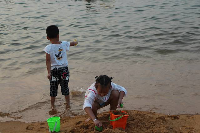 早上7点,在孩子们的磨磨蹭蹭和妈咪们的喊叫声中,总算出门了,出门一看也傻眼了,没有吃饭的地方,于是一队人找呀找,总算在马路对面找到了一个小店卖水煎包的,店小味道真不错,特别是玉米糊糊,我一口气喝了两碗。然后打车去码头了,因为是旺季,人家从师傅都不打表,开口15个大洋,对的,我们了解也就是这个价了。然后就进入买船票流程了,人也不算很多,顺利的买到票上船,出发。下了船以后,热呀,人多呀,拉客的也多呀!因为孩子小,走景点觉得没意思,于是就只考虑去月牙湾,网上提前可以订景点的联程票,那边的景点都是不单卖票的。因为只去月牙湾,所以就只有找拉客的了,问了一圈大人60,孩子30,车来回接送50,于是350元,我们坐上了去月牙湾的“包车”。人家正规的都不卖单票的,所以你们都能想到了,我们是从哪里下去的,当然是小道道啦。人家和里面的管理人员那都是有联系的,下去之后,里面有个人:哪来的,票拿出来看看,然后你把拉客的给你的票拿出来晃晃就OK啦!好吧,我们过关了,带着孩子走在漂亮的球石上,真的很漂亮的石头,但是真的很硌脚,儿子穿的凉鞋说妈妈脚疼,小石头往脚里钻,所以我穿的凉拖,也能想象是个什么感觉了,穿不得脱不得。所以建议各位去月牙湾,最好穿包的严实点的鞋,虽然不好看,但是不痛苦。后面的就不用说了,开始下海狗刨呗(严重建议不要在中午的时候下海,回来真的会脱皮)。下午2:20,我们联系拉客的人来接我们,悲催的事情即将开始。买回城的船票,我无法形容那种感觉,因为是星期天,买票的地方真的比春运还春运,屁股大的售票厅,没有空调,只有两个窗口卖票,各种拥挤、各种加塞、各种味道。朋友去卖票,在里面排了三个多小时,我送了无数次水,送了两瓶藿香正气水,害怕呀。等买到票的心情是无法形容的。带上孩子使劲冲呀,却发现进站口已经快打开了,吼声、导游的喇叭声、小孩的哭声,于是我们被管理员扔到后面说等等。等呀,一个船上的工作人员跑出来,找人,我们把票给他一看,顿时一顿吼,船都要开了,你们怎么还在这里,于是我们问候了下那个拉我们路的美女。接下来又是一通狂奔,老天爷,你对我们真好,总算在18:30关门之前我们踏上了归程,为后面买不到票、进不来的人默哀。所以长岛永不再见,月牙湾很美,但是你的服务真的很差。