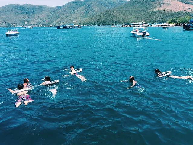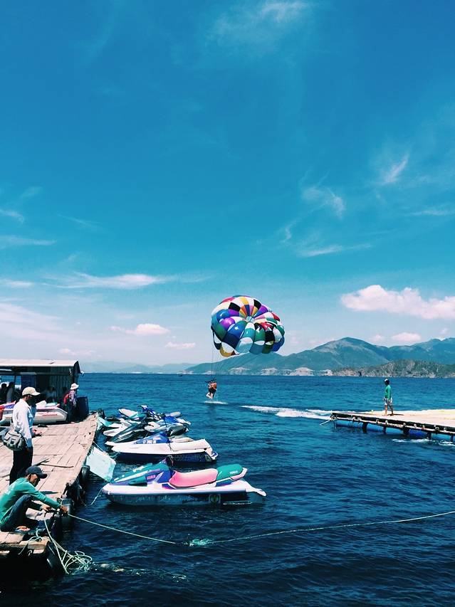 这里可以免费游泳,也可以坐摩托艇、海上滑翔伞、浮潜和深潜,芽庄海水的温度柔和,能见度很高,与隔着玻璃相比,我更爱这种 亲身与海水告白的感觉。