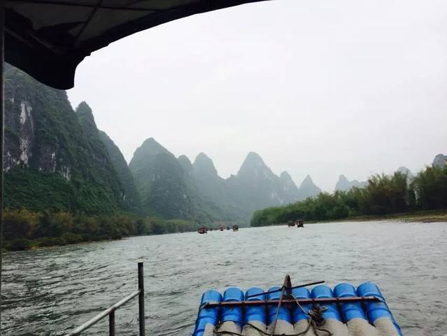好吧,愉快的行程也有要结束的一天,我们需要踏上归程,所以在回来的时候,我们安排了泛舟游漓江,从杨提出发,在网上找好一家店主,跟其约好集合的地方,谈好价钱就可以啦。因为我们大小有五个人,所以就包了一条船,还是蛮舒服的。只是我们玩的这天天气逐渐温度,一下变得好冷啦。