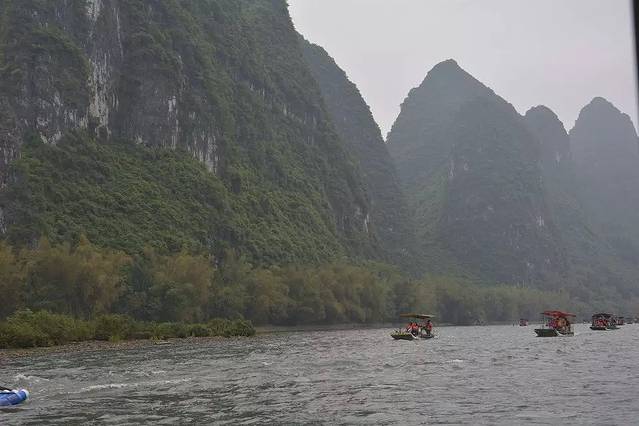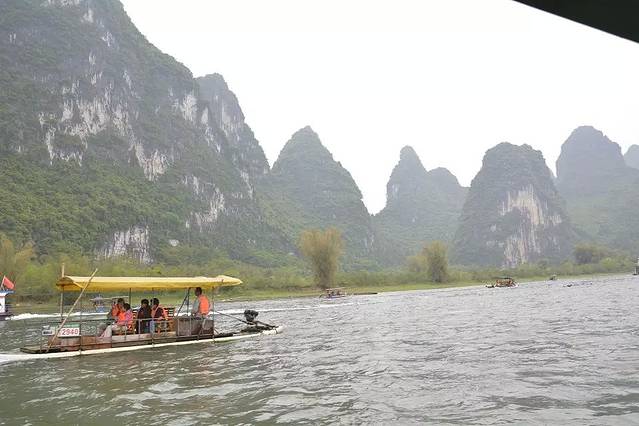 虽然冷但是江上的人还是蛮多的,大家都是想来看看桂林的山水的。其实最好的季节是夏季过来,那个时候的水是清澈见底,还可以跟其他船上的人玩打水仗的游戏,那个还是有一些乐趣的哦。