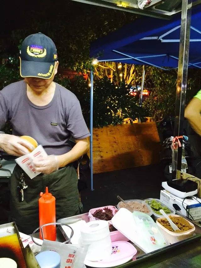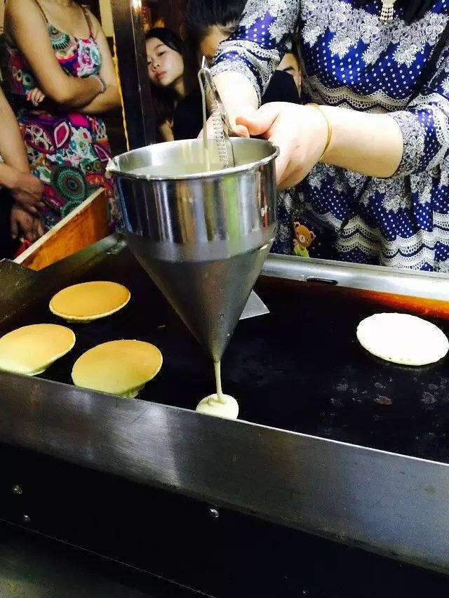 这位是一位台湾阿公的手工铜锣烧,5元一个哦,真材实料的啦,用的是纯牛奶,没有加一滴的水哦。