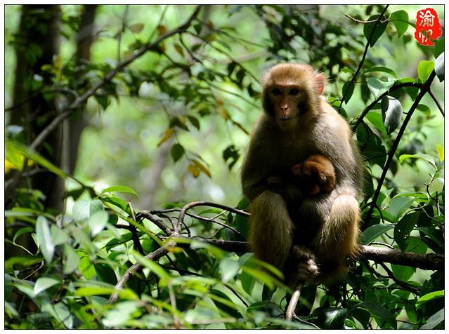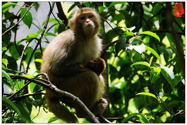 这些猴子大多数都是很友善的,也是很可爱的,尤其是哪些尚在襁袍中的小猴,躺在妈妈的怀里,伸出一个小头,呆呆的望着外面。它们大多自己玩着自己的,即便你从它身边走过,如果不去招惹它们,不用食物去挑逗它们、不用闪光灯去刺激它们,它们都会自得其乐、惬意悠然。