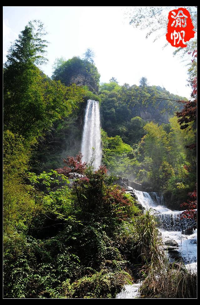 初入景区,便看到一个瀑布从山顶飞泄而下,极其壮观。