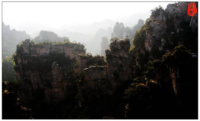 这是离天子山不远的杨家界,可以看到这里的山与天子又不一样了,这里的山一片一片的,像一堵堵墙一般,被誉为天然长城。
