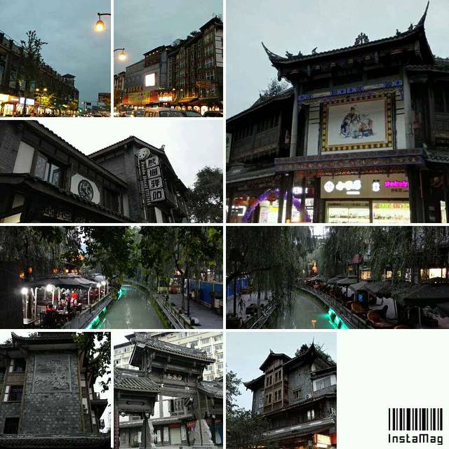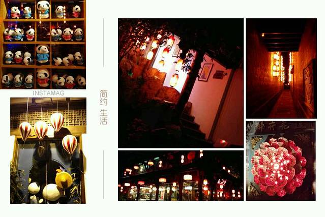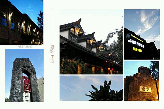 酒店外热闹的灌县古城