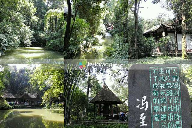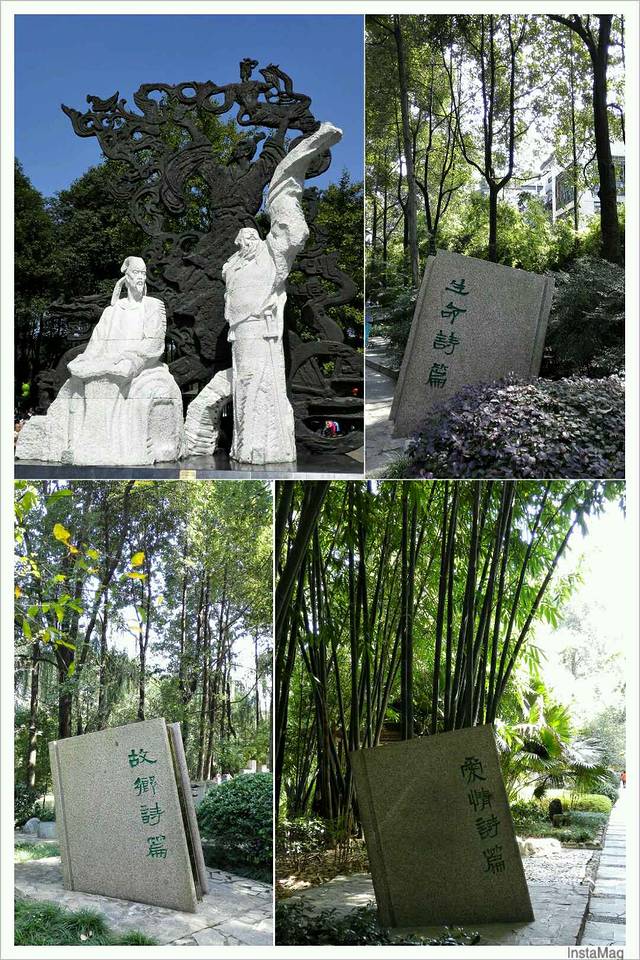 从草堂出来,来到对面的浣花溪公园,竹林,鲤鱼,诗歌大道,很不错的风景。