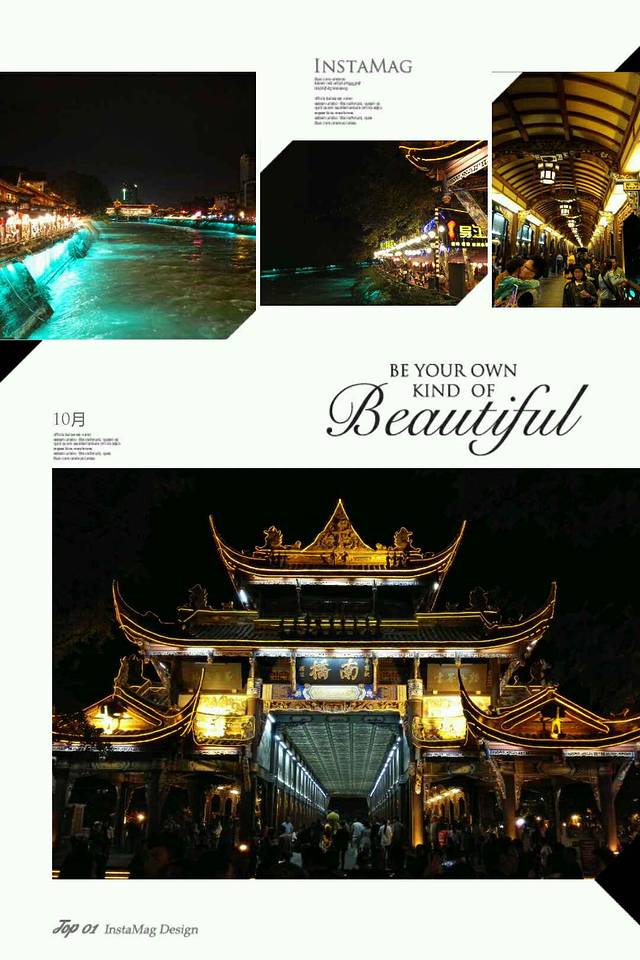 南桥与古城连接,横跨于湍急的内江之上,璀璨夺目。以它为中心的夜啤酒长廊,承载着古城丰富多彩的夜生活。
