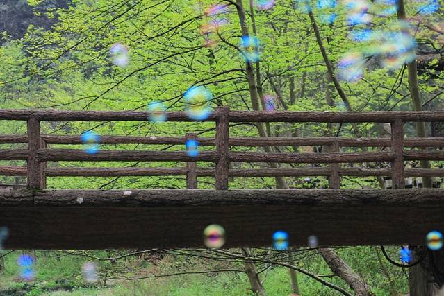 沿途中情不自禁地吹起了泡泡,也别有一番意境